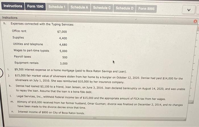 Solved Expense Items Denise Lopez Age 40 Is Single And Chegg Com